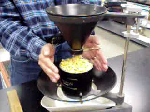 Weight Per Bushel, Test Weight Demo - How Much Does A Bushel Of Soybeans Weigh - Demonstration of how to fill and strike-off a test weight/ weight per bushel cup. Courtsey of USDA/FGIS/GIPSA.